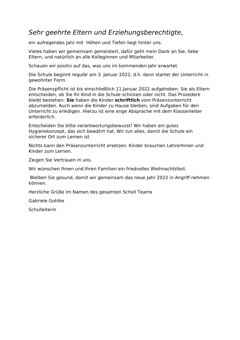 liebe Eltern, und natürlich an alle KollegInnen und Mitarbeiter.