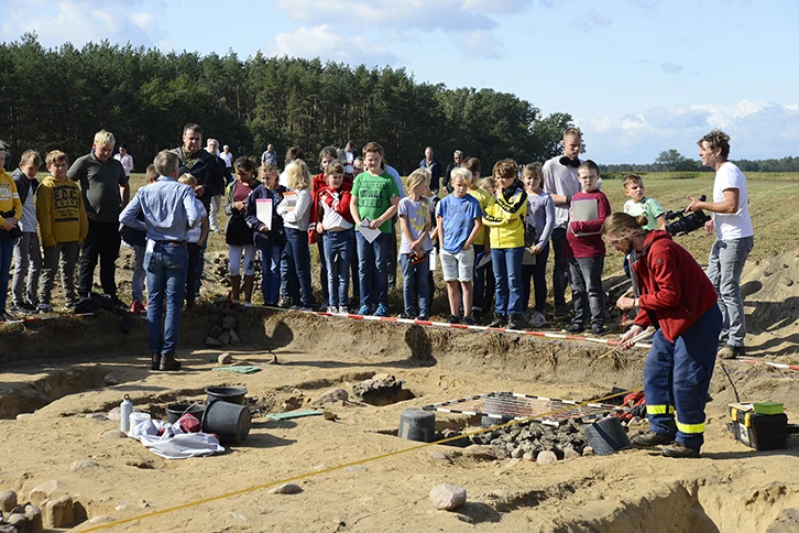 Mit einigen Schülern der fünften Klassen konnten wir das Königsgrab in Seddin besuchen. Anlass war der Abschluß neuer Grabungen und neuer Funde in der nahen Umgebung des Königsgrabes.