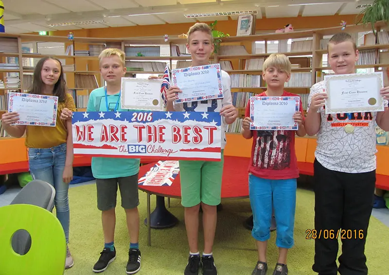 Die Schulsieger des internationalen Englischwettbewerbs "THE BIG CHALLENGE" von 2016 sind:
