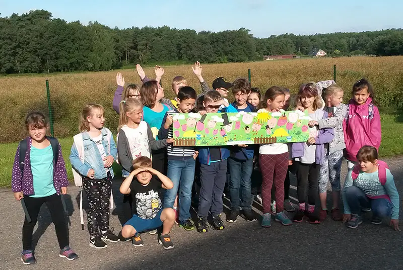 Die Kinder sahen die Abferkelstation mit zwei bis sieben Tage jungen Ferkeln. In der „Kinderstation“ wagten sie sich sogar nach einigem Zögern in die Buchten und streichelten die kleinen neugierigen Ferkel. Außerdem wurde den Kindern sehr anschaulich und verständlich erklärt, wo das Futter für die Schweine angebaut wird. Dieses Wissen wird im Gedächtnis bleiben. Und vielleicht wird aus dem einen oder anderen später ein guter Landwirt, wer weiß?