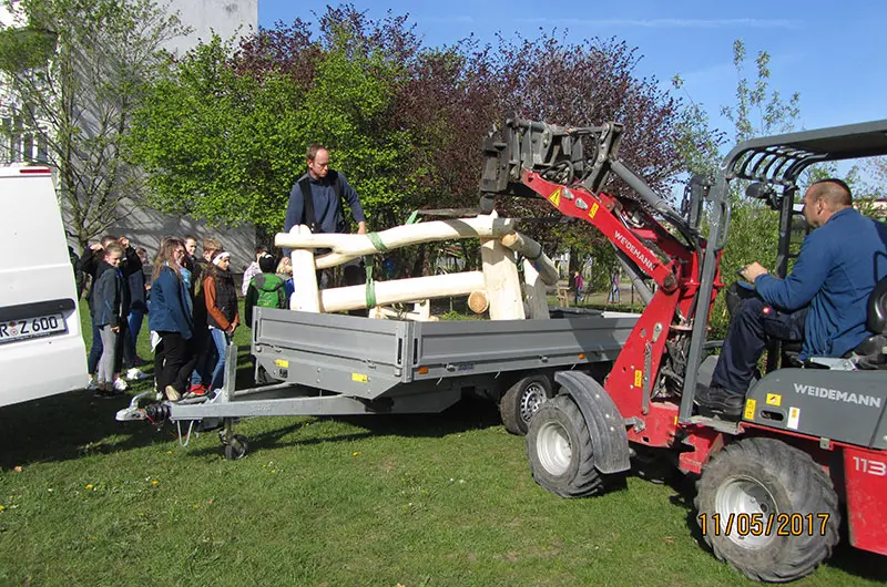 Herr Schult entwarf und baute die Lümmelbänke, die 6b suchte einen gemütlichen Platz auf dem Schulhof- und dann kamen sie.