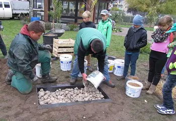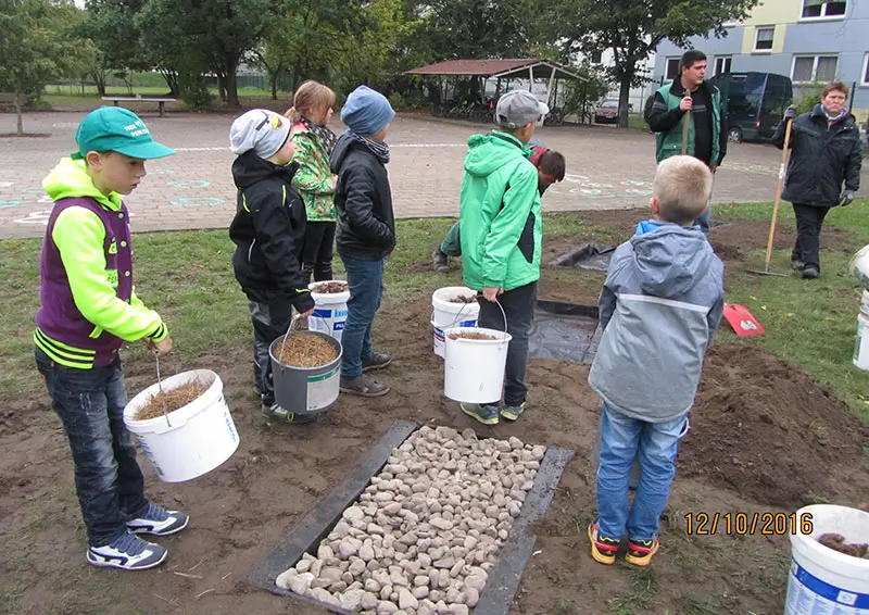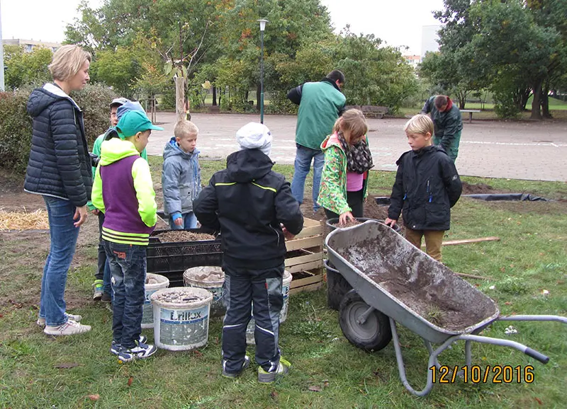 Gemeinsam starteten sie im Juni 2013 das Schulgartenprojekt an der Grundschule „Geschwister Scholl“. Geistig und körperlich Behinderte der Lebenshilfe und die jungen Nachwuchsgärtner, die in der Dobberziner Straße die Schulbank drücken, verwandelten einen Teil des angrenzenden Schulhofes in einen Garten. Beete wurden angelegt, es wurde gesät, gepflanzt und auch geerntet. Ein Gartenhaus, sprich ein grünes Klassenzimmer entstand, eine Streuobstwiese und eine Kräuterspirale wurden angelegt, um nur einige Beispiele zu nennen.