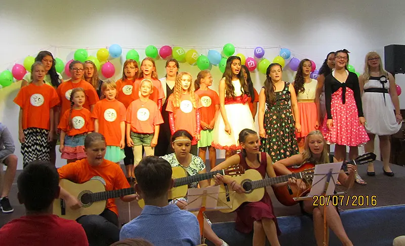 Unser Chor probt jede Woche 45 Minuten. Schülerinnen und Schüler der 2. bis 6. Klasse sind mit großer Disziplin und viel Spaß dabei.