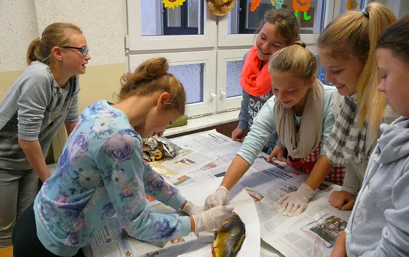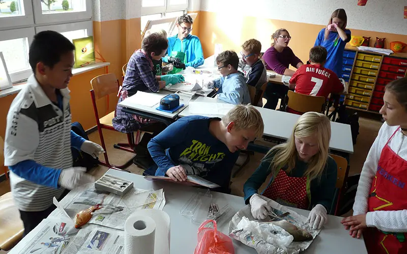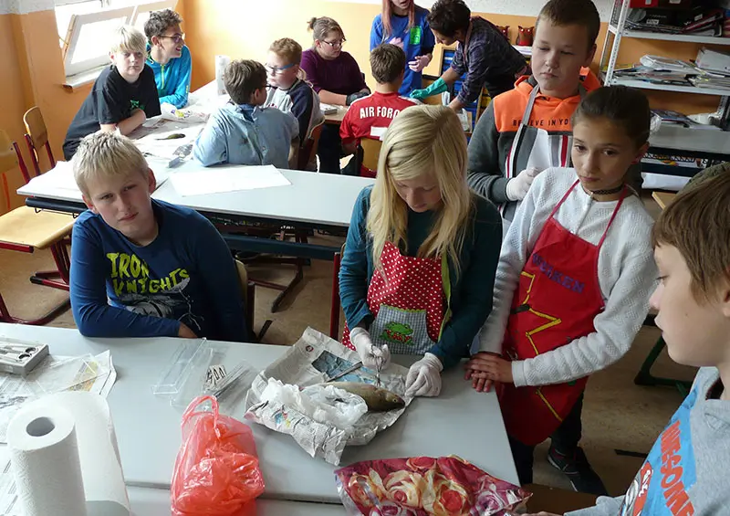 Schüler der 6a und 6b sezieren im Biologieunterricht Fische. Das ist praktischer Unterricht für alle,