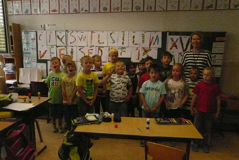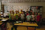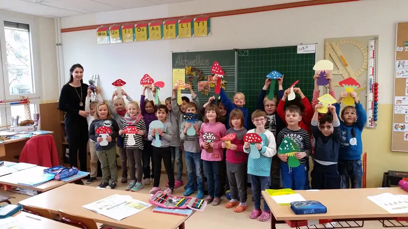 Mit bunten Pilzen grüßt die Klasse 1d eine 3. Klasse in Dortmund. Die Klassen wollen Briefkontakt