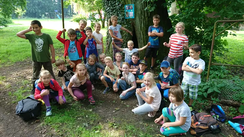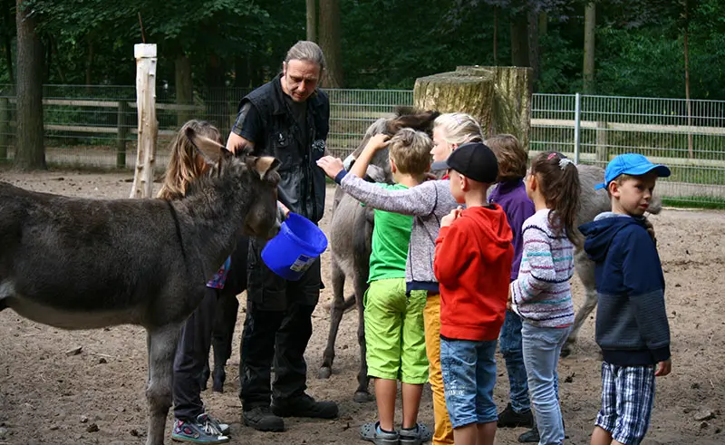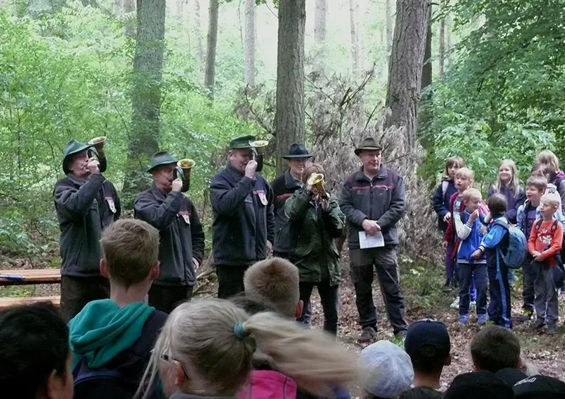 Der Dallminer Förster zeigt den Klassen 1d und 3b seinen Wald. Bei einem gemütlichen Feuer beeindruckt