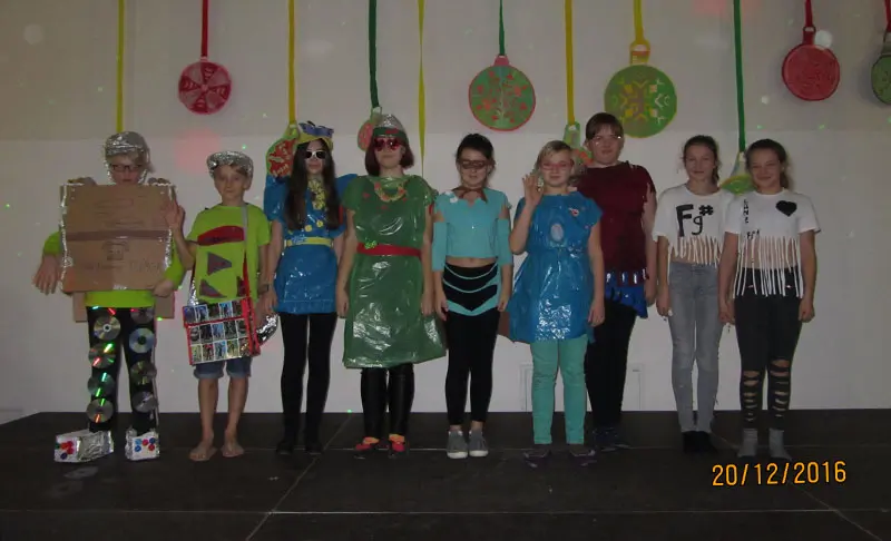 Im Englischunterricht zeigte die 6a Kleidung aus recyceltem Material.