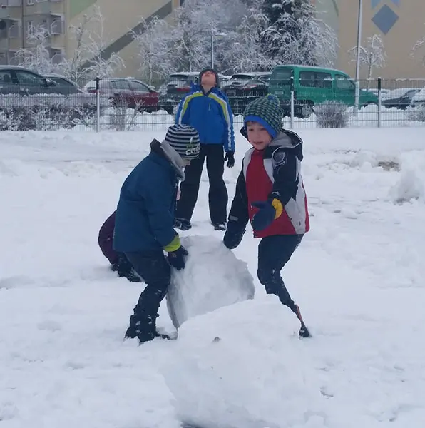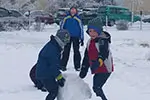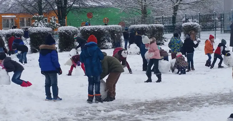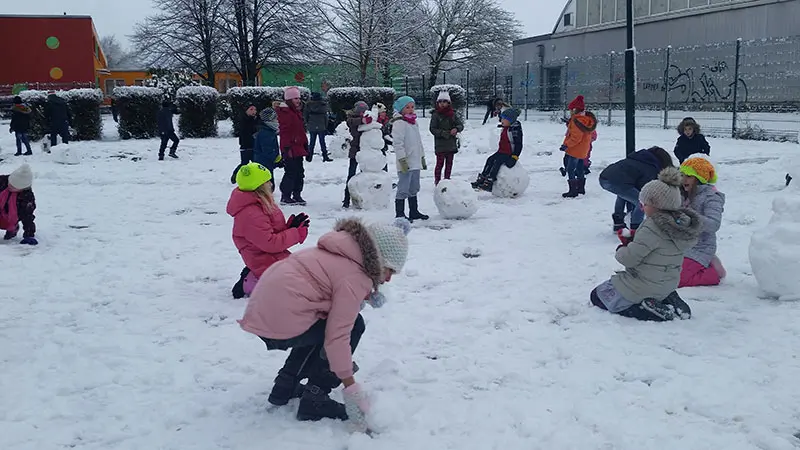... noch nicht weggetaut war, wurde begeistert und emsig zu mehreren Schneefiguren geformt.