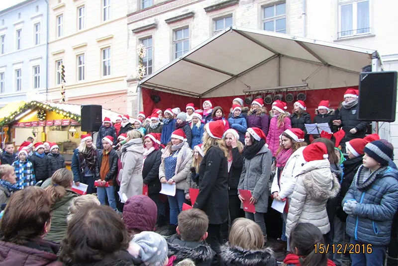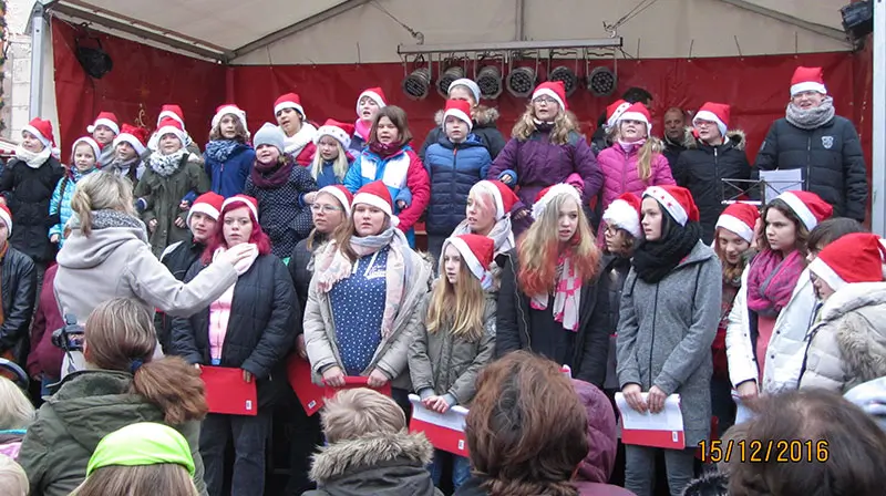Dezember 2016 Der Chor trat traditionell mit der Förderschule zusammen auf dem Weihnachtsmarkt der